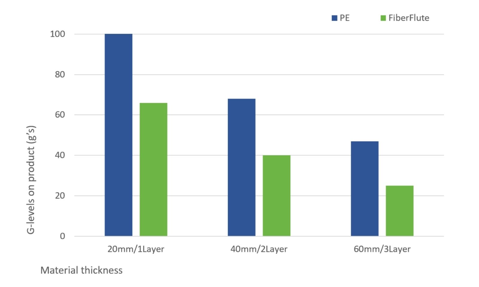Tests comparing polyethylene foam and Nefab’s FiberFlute showed that FiberFlute provides 40–45% better shock absorption, meaning less material is needed to protect products. (Source: Nefab)