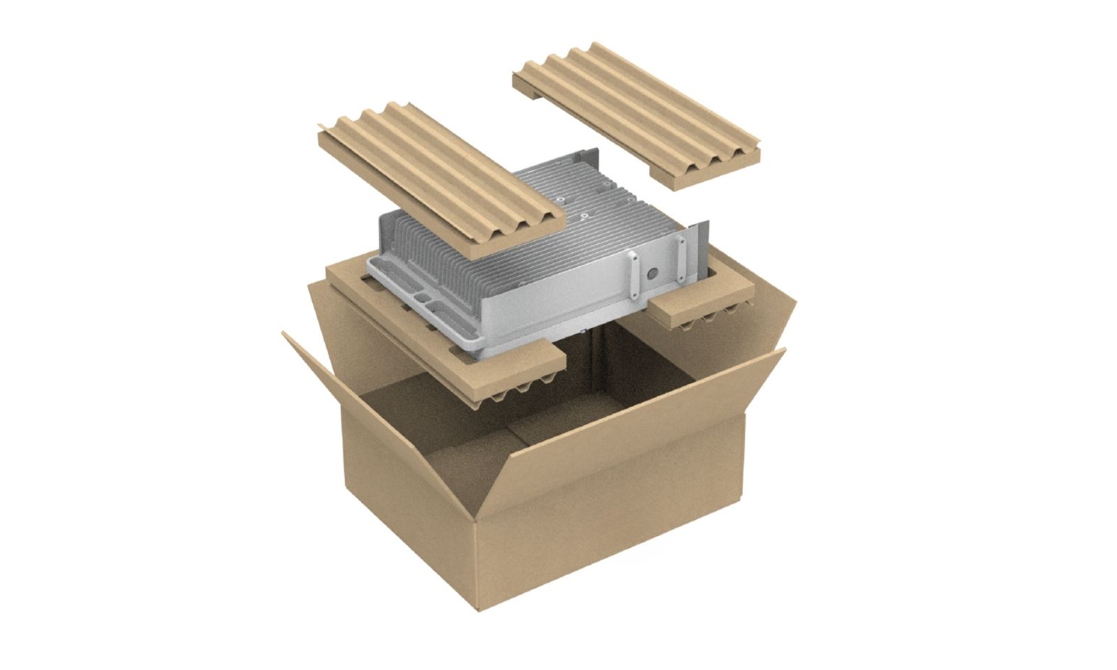 Fiber-based, anti-abrasive packaging inserts safeguard sensitive telecom equipment while cutting plastic from 20% to less than 1% and reducing packaging size by up to 20%.
