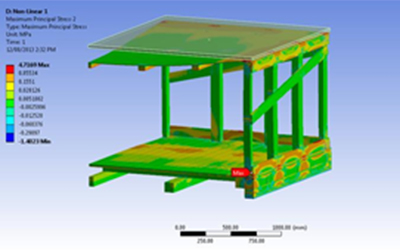 When a packaging is to large or to heavy to test in a normal test environment Nefab can offer Finite Element Analysis (FEA). FEA is a computer aided engineering tool that allows Nefab Engineers to virtually examine the stresses and strains within designs.