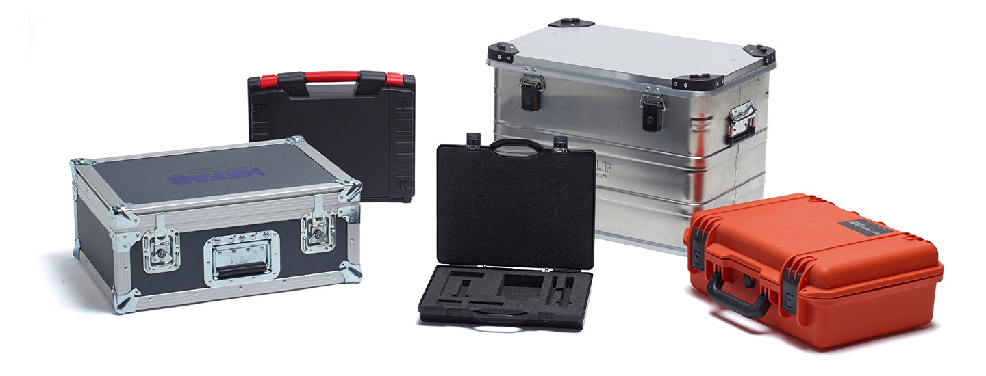 Long-term packaging solutions can be divided into five different groups: Plywood boxes, Flight cases, Plastic boxes, Watertight cases, Aluminum boxes