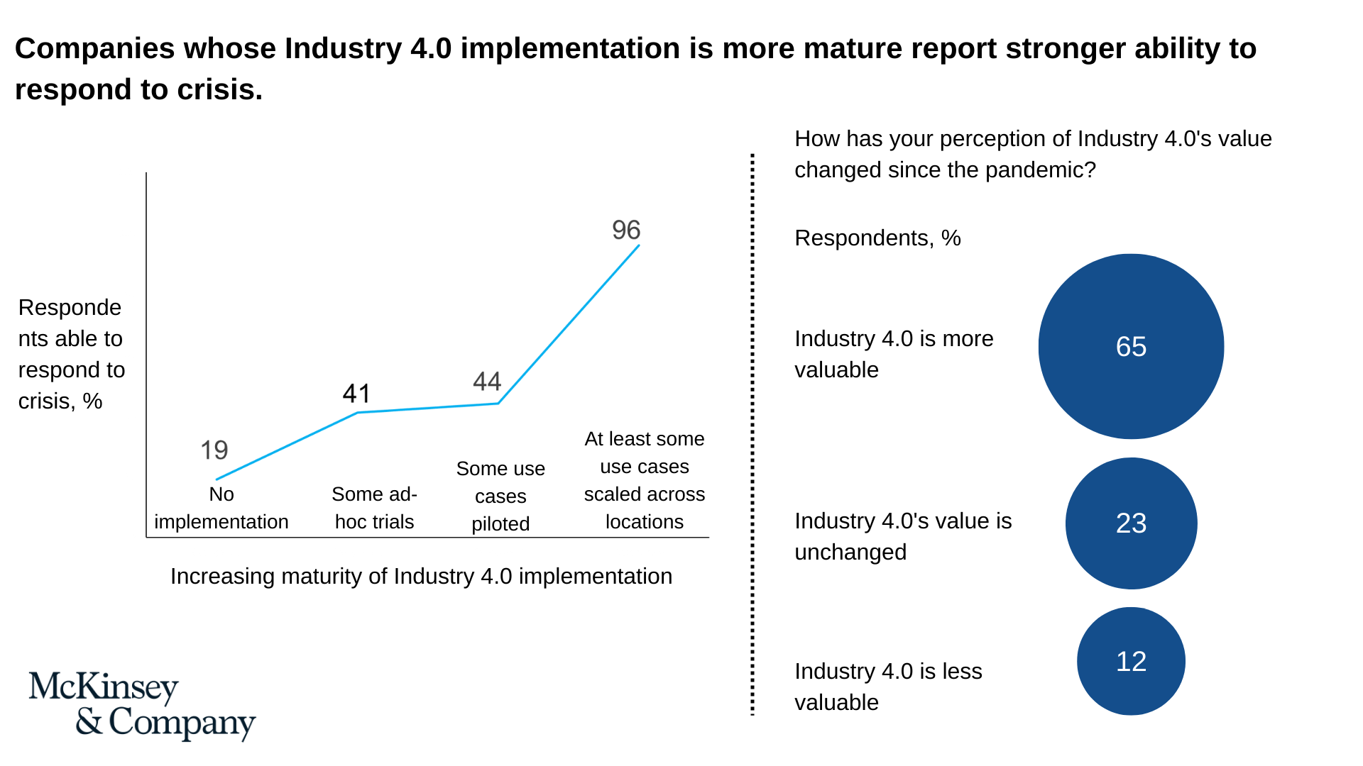According to a McKinsey survey, 96% of companies that implemented Industry 4.0 prior to COVID-19 were better positioned to respond to the crisis