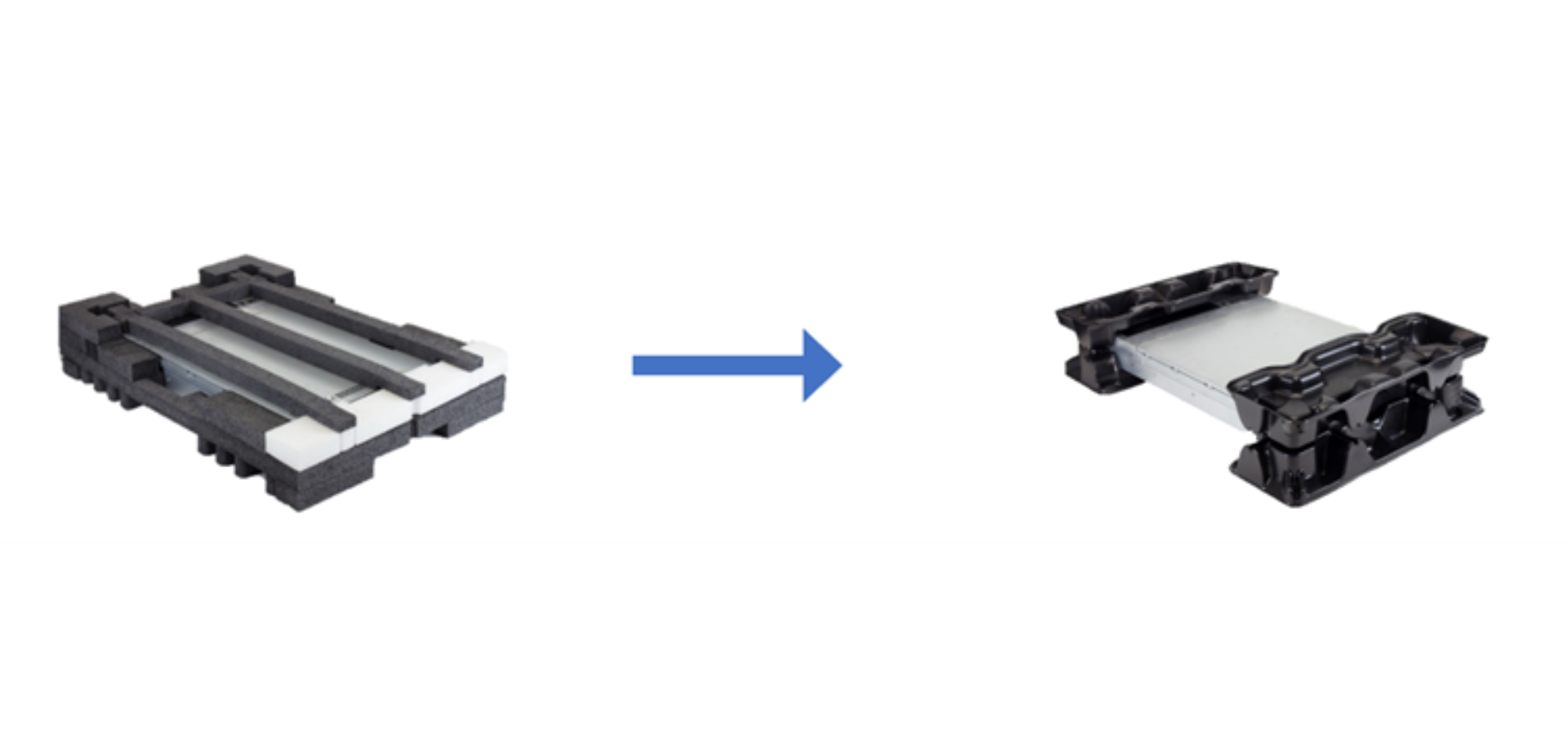 Nefab thermoformed cushion designs for semiconductor components allow to save 85% of space during inbound transport and supply base storage.