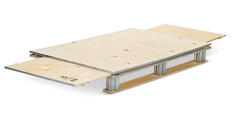 Nefab offers several different types of ExPaks — ranging from smaller, one-unit boxes to larger solutions with up to six separate pieces, all foldable for ease of storage and transportation. Regardless of the type, each is made with a combination of plywood and galvanized steel profiles, which functions as hinges that help give the ExPak its high strength and flexibility.
