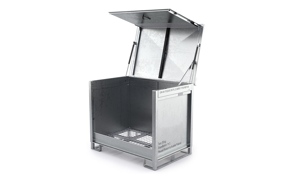 Este contenedor de acero para mercancías peligrosas ha sido diseñado y tiene patente en trámite para el transporte y almacenamiento de sistemas de retención como airbags, pretensores de cinturones de seguridad o generadores de gas. Consta de un contenedor exterior plegable estandarizado que rodea bandejas modulares apilables y encajables. Los contenedores de acero para sistemas reutilizables son una apreciada forma de embalaje que puede personalizarse para satisfacer las necesidades de los clientes. Nefab diseña y suministra contenedores de malla metálica multiuso, así como contenedores de acero personalizados para una mejor manipulación. Las estanterías de acero tienen una larga vida útil y su resistencia protege los productos de los impactos y la manipulación brusca. El diseño puede personalizarse totalmente para proporcionar una manipulación óptima en la línea de producción. Para su uso en flujos de salida o entrada, las estanterías de acero pueden hacerse plegables para minimizar los costes de transporte.