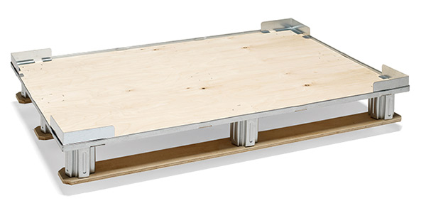 Nuestros palets suelen combinarse con un embalaje exterior, aunque también pueden utilizarse por separado con una envoltura de plástico para asegurar la mercancía. Nefab ofrece palets habituales en la industria, como los de madera, acero y plástico, así como el propio palé ligero de madera contrachapada de Nefab. El palet ligero está fabricado con una parte superior de madera contrachapada y latas de acero galvanizado que hacen las veces de bloques en el palet. Como las latas son huecas y de acero, la solución es extremadamente ligera y duradera.