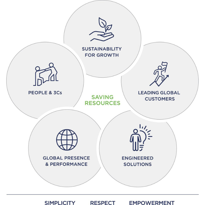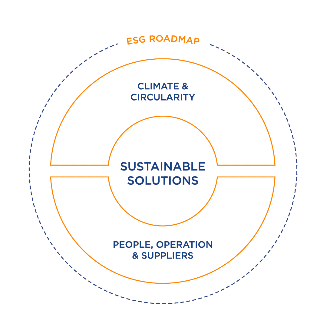 Meie jätkusuutlikkuse strateegia eesmärk on aidata meie klientidel saavutada oma kliima- ja ringluse eesmärke, pakkudes jätkusuutlikke lahendusi meie pühendunud meeskonna, tõhusa tegevuse ja tugeva tarneahela kaudu. Samal ajal vähendame pidevalt oma keskkonnajälge. Edusamme toetab põhjalik ESG tegevuskava, mis reguleerib meie jätkusuutlikkuse algatuste edenemist.