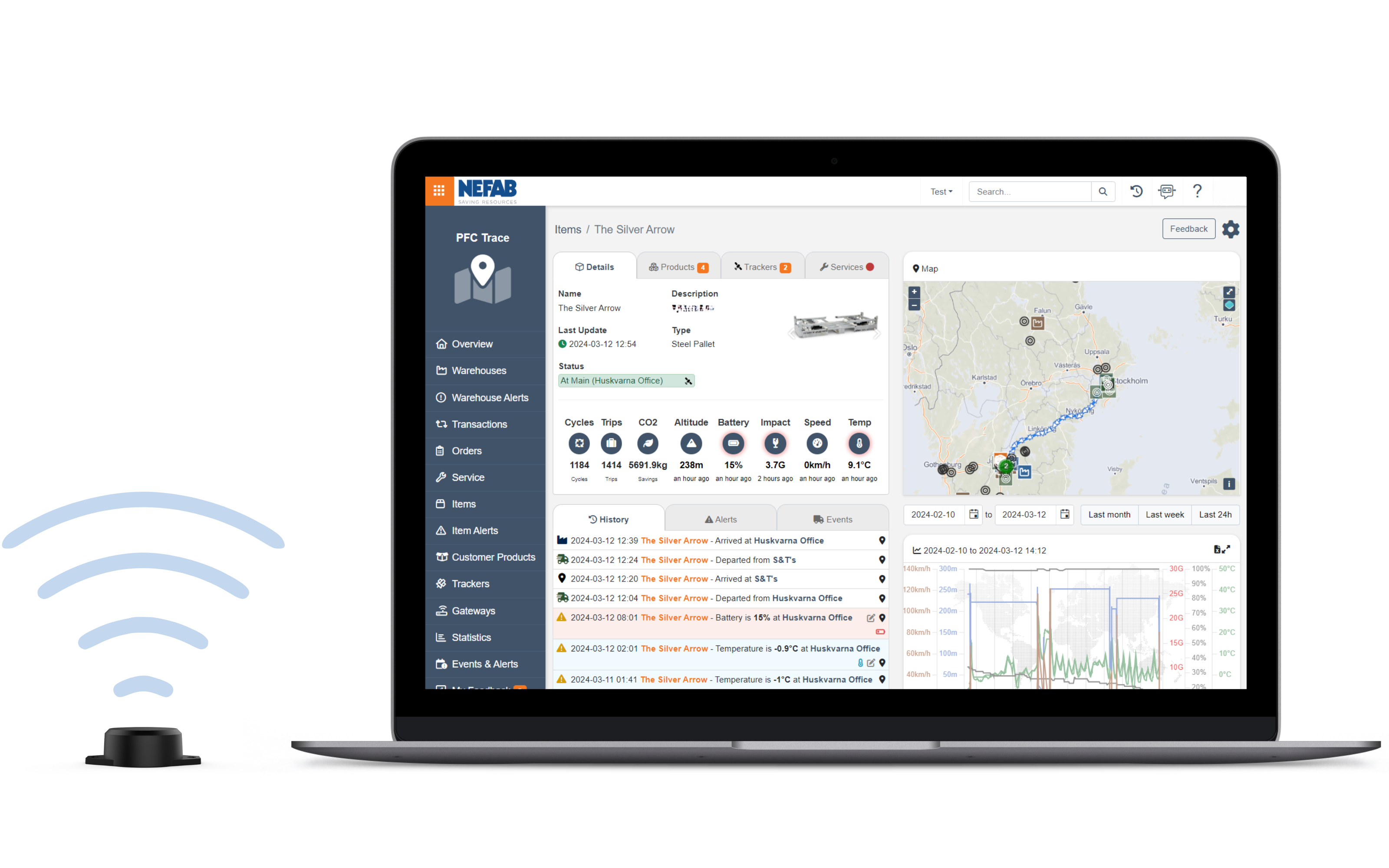Per massimizzare i vantaggi delle soluzioni di imballaggio a rendere, i servizi di pooling di Nefab possono essere integrati dal nostro servizio digitale per la gestione degli imballaggi a rendere. Questo servizio digitale si basa su una solida piattaforma che semplifica la tracciabilità e la gestione degli imballaggi a rendere. Aggiungendo i tracker ai vostri imballaggi a rendere e monitorandoli con la nostra piattaforma, otterrete trasparenza e controllo sui vostri flussi di ritorno. La nostra soluzione vi consente di ottimizzare le risorse, ridurre gli sprechi e migliorare la sostenibilità.