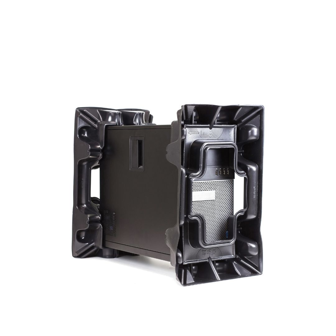 Thermoformed solutions are produced from polymer resins that soften when heated and harden when cooled during thermoforming or vacuum forming technology. This means that they can be easily molded, customized, and engineered not once, but multiple times. Additionally, they do not experience any changes to their chemical properties when processed, which makes them one of the most sustainable plastic packaging products available (Recycled Packaging). This enhanced reusability also offers limitless branding opportunities to customize the packaging at the point of sale and increase product visibility.