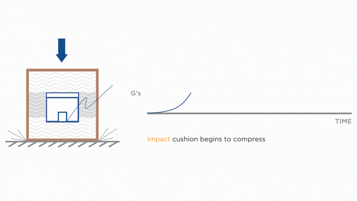 To determine the protection level of the packaging against shock events, it is necessary to measure the shock pulse, which consists of the rise and decay time. Knowing when the peak deceleration starts and when it ends allows us to calculate the rise time, while the decay time is the time left until the shock ends. The shape of the shock pulse allows us to understand if the cushion is designed properly and understand what type of sustainable cushioning material best absorbs the shock and protects your product during the selected transportation mode.