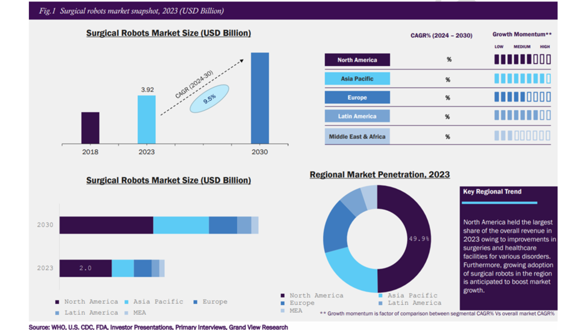 Offering unmatched precision and control, these machines are revolutionizing procedures across specialties like general surgery, orthopedics, and urology. With the global surgical robot’s market expected to reach USD 7.42 billion by 20301, their impact is undeniable.