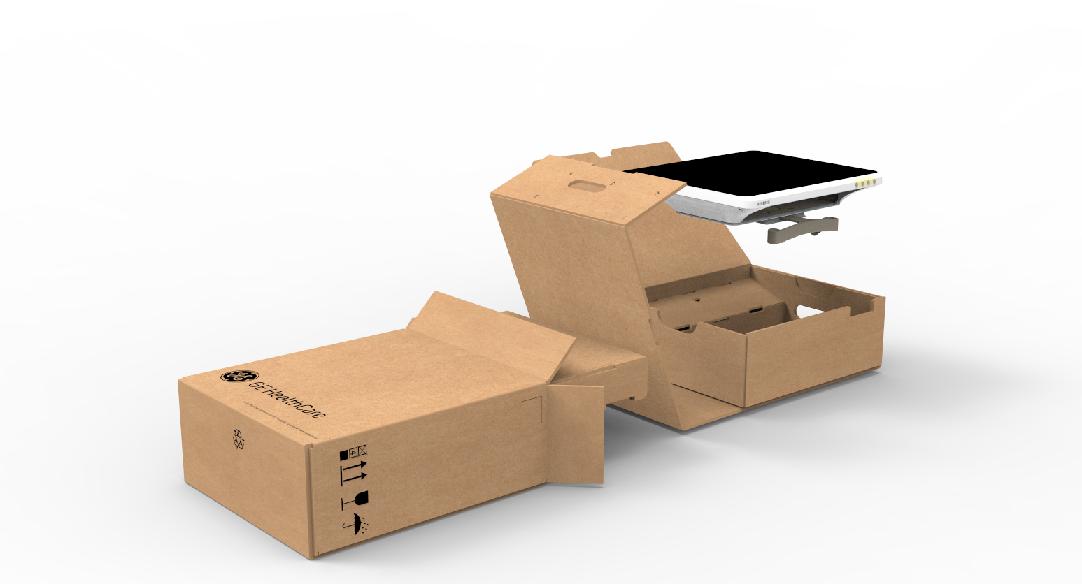 GE HealthCare encountered a typical challenge in shipping high-end medical devices — securing packaging that safeguards their delicate monitors during worldwide transport, while considering the environmental impact and enhancing the unboxing experience. The original packaging for the CARESCAPE Canvas Monitor used conventional cardboard boxes with PE foam cushions. GE HealthCare collaborated with Nefab to create an improved packaging solution.