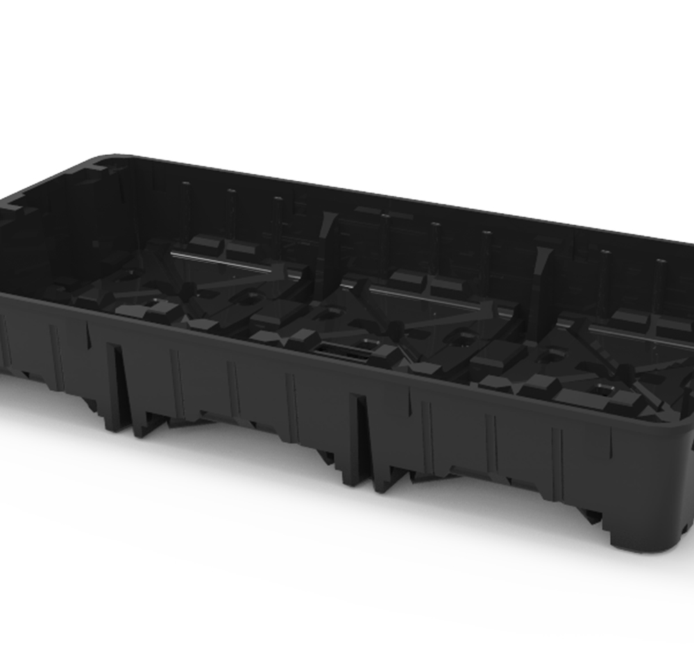 Onze recycleerbare trays, gemaakt van tot 100% gerecycleerde materialen, kunnen worden hergebruikt en zijn ontworpen om ruimte te besparen en zo de impact op het milieu en de kosten te beperken.