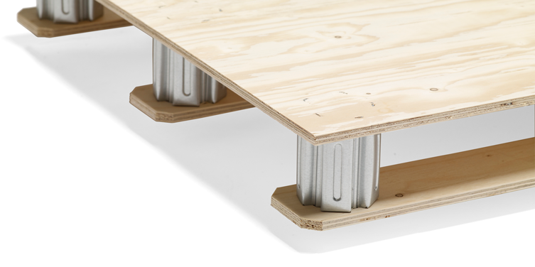 Nefab patenterte lettvektspallen med hule stålbokser, bølgepappramme og hjørnebeskyttelse på lokk og bunn for ekstra støtte. Bølgepapphylsen kan erstattes med kryssfiner hvis det er behov for ekstra beskyttelse.