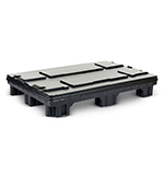 Lettvektspallen med bølgepapphylse og lokk, med en kantplate i bunnen for å holde hylsen på plass. Når det gjelder ytteremballasje og paller, er dette den letteste materialkombinasjonen som finnes, og derfor den mest ideelle for lufttransport.