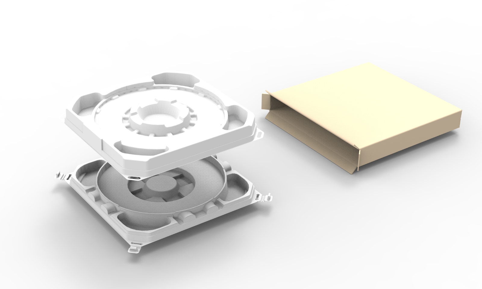 Zaprojektowane rozwiązanie opakowaniowe z termoformowaną poduszką precyzyjnie zabezpiecza ceramiczny dysk półprzewodnikowy o wysokiej czystości, zapewniając jego stabilność, czystość i ochronę podczas globalnego transportu.
